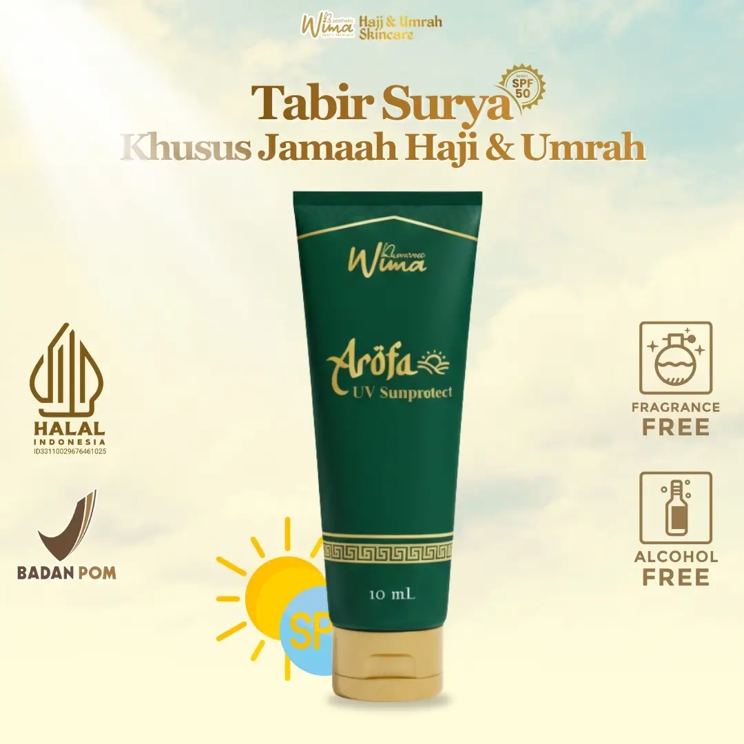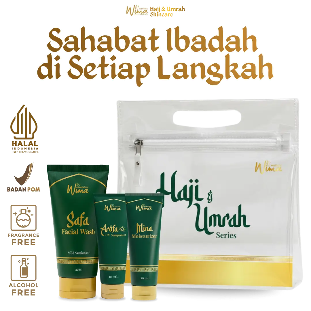 Banyak jamaah khawatir memakai skincare karena takut mengandung alkohol atau wewangian yang dilarang dalam larangan ihram. Wima Aesthetic diformulasikan khusus secara murni tanpa parfum dan tanpa alkohol sehingga Anda tetap bisa merawat kulit dari cuaca ekstrem tanpa perlu was-was akan keabsahan ibadah Anda.