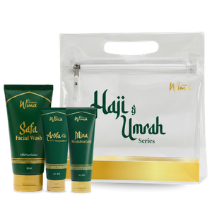 Skincare khusus haji dirancang memenuhi syarat fikih (tanpa parfum & alkohol) sekaligus memiliki daya hidrasi lebih tinggi untuk melawan cuaca ekstrem di padang pasir.